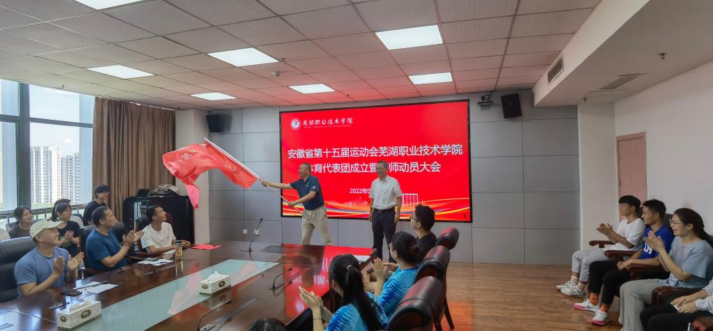 “體育的力量在于凝聚人心,振奮精神”。高武在講話中指出,學校多年來持續強化體育對于培養德智體美勞全面發展的社會主義建設者和接班人的重要地位,牢固樹立“以人為本、健康第一、面向全體、團隊學習”的理念,通過實施體育俱樂部制教育教學改革,圍繞“教會、勤練、常賽”三個方面,推動體育工作出實效。對于本次學校體育代表團出征安徽省第十五屆運動會,他提出了四點希望,一是希望全體教練員、運動員一定要牢記重托、不辱使命,大力弘揚體育精神,努力為學校争光;二是希望大家一定要嚴肅賽風賽紀,充分展現出安徽省唯一的雙高校形象;三是希望有關部門做好服務保障工作,确保萬無一失,争取在本屆省運會上實現運動成績和精神文明雙豐收;四是希望教練員和運動員們嚴格按照大賽組委會的要求做好疫情防控工作,确保人身安全。在運動員代表和教練員代表宣誓之後,高武為學校體育代表團授旗,并預祝大家帶着優異的成績從賽場上凱旋歸來,為學校增光,為人生添彩。